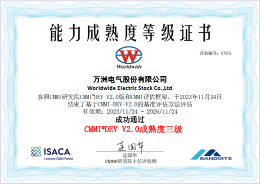 CMMI成熟度三级证书